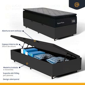 Além do colchão, a base baú incorporada aumenta a funcionalidade do seu quarto, oferecendo um espaço de armazenamento adicional. Construída com madeira tratada, tornando-a não apenas prática mas também durável e resistente. Este conjunto é a solução perfeita para quem busca maximizar o conforto e a utilidade em espaços compactos.