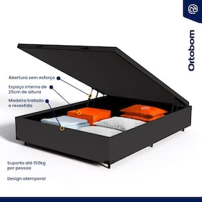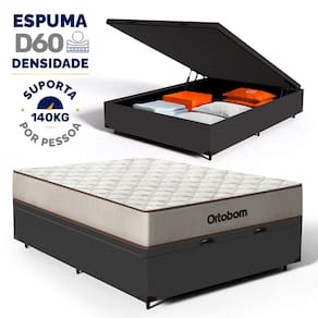 Cama Box Baú com Colchão de Espuma D60 Double Face Force Dream - Ortobom Casal 138cm - Preto