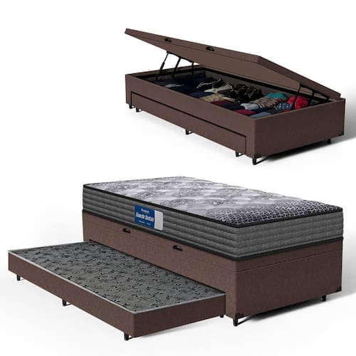 A Base Baú com Auxiliar da Lucas Colchões combina praticidade e durabilidade. A cama auxiliar embutida é uma solução inteligente para otimizar espaço, ideal para visitas ou famílias grandes. Fácil de manusear, pode ser utilizada sempre que necessário e guardada discretamente, mantendo o ambiente organizado. O baú com um super espaço interno, ideal para guardar roupas de cama, edredons, travesseiros, mantas, toalhas e etc. É perfeita para quem busca otimizar espaço sem abrir mão da qualidade e resistência.