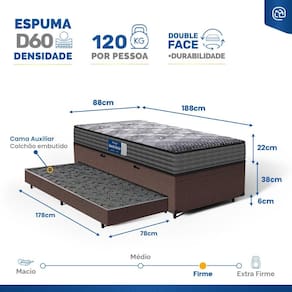 - Dimensões do produto (larg. x comp. x alt.) Solteiro: 88x188x44cm.