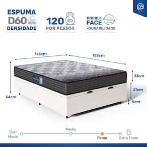 - Dimensões (larg. x comp. x alt.) Casal: 138x188x42cm;