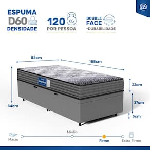 - Dimensões (larg. x comp. x alt.) Solteiro: 88x188x42cm;