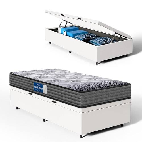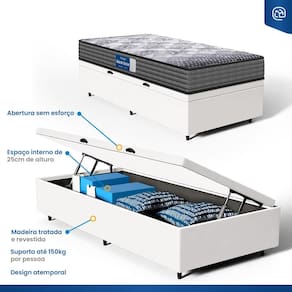 Além do colchão, a base baú incorporada aumenta a funcionalidade do seu quarto, oferecendo um espaço de armazenamento adicional. Construída com madeira tratada, tornando-a não apenas prática mas também durável e resistente. Este conjunto é a solução perfeita para quem busca maximizar o conforto e a utilidade em espaços compactos.