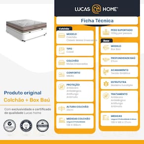Madeira tratada (base baú), Espuma/Molas/Tecido (colchão)Vendido e entregue por Lucas Colchões