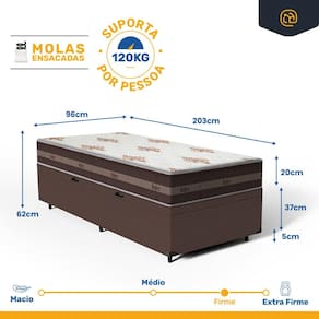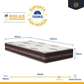 - Dimensões do produto (larg. x comp. x alt.) Solteiro King: 96x203x20cm.