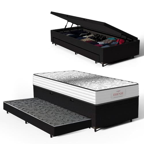 A Base Baú com Auxiliar da Lucas Colchões combina praticidade e durabilidade. A cama auxiliar embutida é uma solução inteligente para otimizar espaço, ideal para visitas ou famílias grandes. Fácil de manusear, pode ser utilizada sempre que necessário e guardada discretamente, mantendo o ambiente organizado. O baú com um super espaço interno, ideal para guardar roupas de cama, edredons, travesseiros, mantas, toalhas e etc. É perfeita para quem busca otimizar espaço sem abrir mão da qualidade e resistência.
