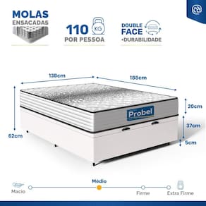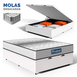Cama Box Baú com Colchão de Molas Ensacadas Double Face Essence Probel Casal 138cm - Branco