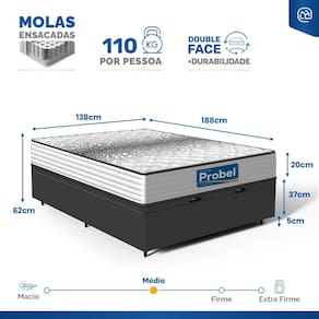 - Dimensões (larg. x comp. x alt.) Casal: 138x188x42cm;