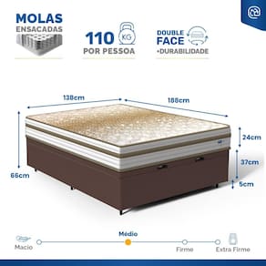 - Dimensões (larg. x comp. x alt.) Casal: 138x188x42cm;