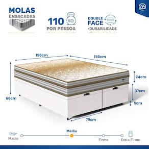 - Dimensões (larg. x comp. x alt.) Queen: 158x198x42cm Bipartido(2 Partes de 79);