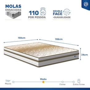 - Dimensões (larg. x comp. x alt.) 158x198x24cm.