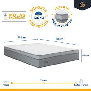 Deseja conforto extra e suporte individualizado? Nosso colchão com Molas Ensacadas e Pillow In oferece uma camada de conforto que se adapta ao seu corpo, aliviando pontos de pressão para um sono revigorante. Ideal para quem busca maciez e suporte duradouro, com capacidade para até 120 kg por pessoa.