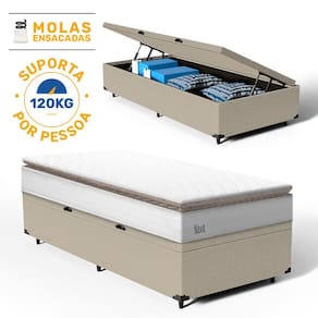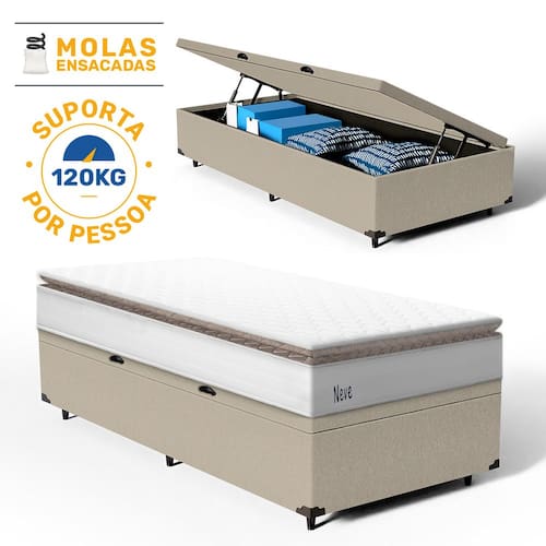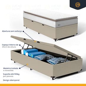 Além do colchão, a base baú incorporada aumenta a funcionalidade do seu quarto, oferecendo um espaço de armazenamento adicional. Construída com madeira tratada, tornando-a não apenas prática mas também durável e resistente. Este conjunto é a solução perfeita para quem busca maximizar o conforto e a utilidade em espaços compactos.