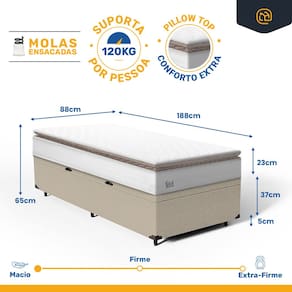 - Dimensões (larg. x comp. x alt.) Solteiro: 88x188x42cm;