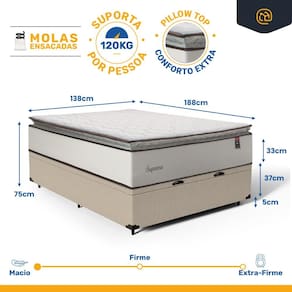 - Dimensões (larg. x comp. x alt.) Casal: 138x188x42cm;