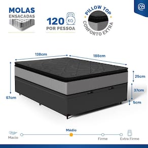 - Dimensões (larg. x comp. x alt.) Casal: 138x188x42cm;