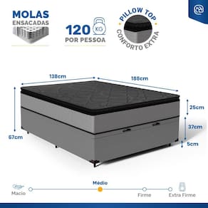 - Dimensões (larg. x comp. x alt.) Casal: 138x188x42cm;