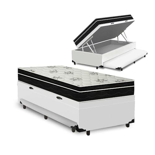 A Cama Box Baú e Auxiliar Solteiro Branca + Colchão Molas - Ortobom - Physical Nanolastic é uma combinação exclusiva da Lucas Home Center. Que oferece um combo de praticidade e agilidade na aquisição. O Colchão Physical Nanolastic Solteiro Ortobom possui estrutura em molas de alta qualidade e conforto. Confeccionado em molas Nanolastic é indicado para pessoas de até 120kg proporcionando conforto macio, o que lhe confere conforto extra durante o sono sem comprometer sua coluna. A cama Box com Baú e Auxiliar é confeccionada com materiais de qualidade, tornando o produto de alta durabilidade, resistência e um excelente acabamento. A alternativa ideal para maior aproveitamento do seu quarto, Ah! Ela conta ainda com cama auxiliar, para acomodar suas visitas com maior conforto, e um baú para guardar o que você desejar. Além de linda, ela é funcional!
