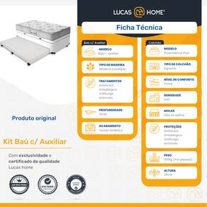 A cama Box com Baú e Auxiliar é confeccionada com materiais de qualidade, tornando o produto de alta durabilidade, resistência e um excelente acabamento. A alternativa ideal para maior aproveitamento do seu quarto, Ah! Ela conta ainda com cama auxiliar, para acomodar suas visitas com maior conforto, e um baú para guardar o que você desejar. Além de linda, ela é funcional!