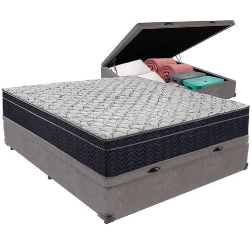 Cama Box Baú e Colchão Airtech 150 Espuma D45 Casal Ortobom - Cinza