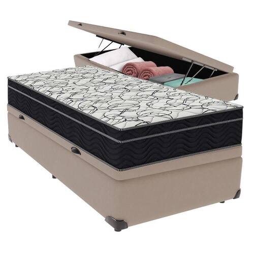 Cama Box Baú E Colchão Airtech 150 Espuma D45 Solteiro Ortobom Solteiro Bege
