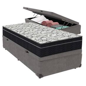 Cama Box Baú E Colchão Airtech 150 Espuma D45 Solteiro Ortobom Solteiro Cinza