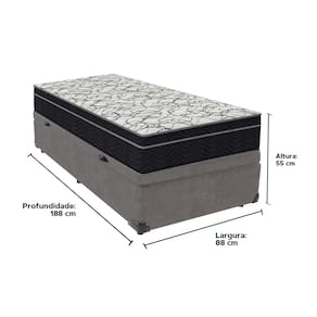 Cama Box Baú e Colchão Airtech 150 Espuma D45 Solteiro Ortobom - Cinza