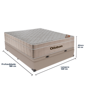 O conforto que sua casa precisa e a qualidade que você merece está na Kazamix! Durma com a Qualidade e Conforto que Você Merece! O Colchão Airtech Molas ensacadas Ortobom é a escolha perfeita para quem busca conforto e suporte. Equipado com um sistema de molas ensacadas, ele oferece suporte individualizado, garantindo o alinhamento correto da coluna e reduzindo os impactos dos movimentos durante o sono. O Euro Pillow proporciona uma camada extra de maciez, garantindo um sono ainda mais revigorante. Seu revestimento em tecido de malha e matelassê, junto com a lateral em suede, proporcionam um visual sofisticado, elevando ainda mais a estética do seu dormitório e agregando elegância ao ambiente. Além disso, o colchão conta com proteção antiácaro e antialérgico, criando um ambiente de sono mais saudável e ideal para quem busca bem-estar. Produzido com materiais de alta qualidade e a confiabilidade da Ortobom, líder em tecnologia e durabilidade, ele é feito para durar, oferecendo anos de conforto e suporte. Modelo: Airtech Molas ensacadas Marca: Ortobom Tamanho: Viúvo Dimensões: 128x188X25 (Largura x Comprimento x Altura) Conforto: Macio Sistema: Molas Ensacadas Pillow: Euro Pillow Peso Máximo recomendado: 120 kg (Por pessoa) Proteções: Antiácaro, antialérgico, antifungo, antimofo Garantia: 1 ano pelo FabricanteO conforto que sua casa precisa e a qualidade que você merece está na Kazamix Aproveite cada metro quadrado do seu dormitório com a Cama Box Baú! Projetada com madeira de reflorestamento reforçada, a Cama Box Baú é a escolha ideal para quem busca otimização de espaço e praticidade na organização do dia a dia. Com um baú generoso, ela oferece a solução perfeita para armazenar travesseiros extras, cobertores, malas e muito mais. Além disso, sua estrutura robusta suporta até 150 kg por pessoa, garantindo a sustentação ideal para o seu colchão e prolongando sua vida útil. O pistão a gás robusto proporciona uma abertura suave e segura do baú, oferecendo praticidade e resistência no uso diário. Para completar, o acabamento de alta qualidade combina perfeitamente com qualquer estilo de decoração, agregando elegância e versatilidade ao seu ambiente. Não perca tempo! Adquira agora mesmo sua Cama Box Baú e diga adeus à falta de espaço e desorganização. Marca: KazaMix Modelo: Baú Tamanho: Viúvo Dimensões: 128X188X37 (Largura x Comprimento x Altura) Estrutura: Madeira Peso máximo recomendado: 150 kg (Por Pessoa) Altura do Box: 32 cm Altura dos Pés: 5 cm Altura total: 37 cm Garantia: 03 meses Selo Ecologicamente Correto Atenção: Antes de finalizar sua compra, certifique-se de que as dimensões do produto sejam adequadas para serem transportadas pelos elevadores, portas, escadas e corredores de sua residência. Ressaltamos que não nos responsabilizamos pelo transporte do produto por meios específicos, como escadas, guinchos ou içamentos.