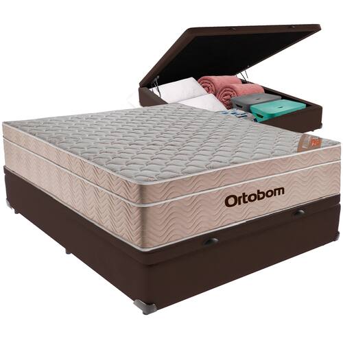 Cama Box Baú e Colchão Airtech Molas Ensacadas Viúvo Ortobom - Marrom