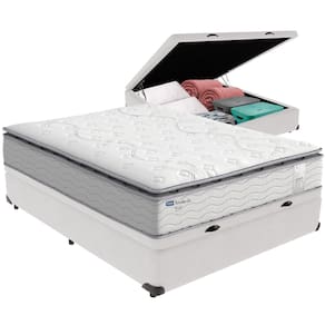 O conforto que sua casa precisa e a qualidade que você merece está na Kazamix! Colchão Probel Amsterdã – a escolha perfeita para noites de sono inigualáveis. Equipado com Molas Ensacadas Prolastic, oferece suporte individualizado, reduzindo a transferência de movimentos para um descanso mais tranquilo. Seu Pillow Top Super proporciona uma camada extra de maciez, elevando o conforto e garantindo uma experiência de luxo. Com camadas de espuma D33 e D65, o Amsterdã combina firmeza e durabilidade, enquanto as proteções antiácaro, antialérgico e antifungo criam um ambiente de sono saudável. Invista em qualidade e bem-estar com o Colchão Probel Amsterdã e transforme suas noites. Modelo: Amsterdã Marca: Probel Tamanho: Casal Dimensões: 138x188X34 (Largura x Comprimento x Altura) Conforto: Firme Sistema: Molas Ensacadas Pillow: Pillow Top Peso Máximo recomendado: 120 kg (Por pessoa) Proteções: Antiácaro, antialérgico, antifungo, antimofo Garantia: 1 ano pelo FabricanteO conforto que sua casa precisa e a qualidade que você merece está na Kazamix Aproveite cada metro quadrado do seu dormitório com a Cama Box Baú! Projetada com madeira de reflorestamento reforçada, a Cama Box Baú é a escolha ideal para quem busca otimização de espaço e praticidade na organização do dia a dia. Com um baú generoso, ela oferece a solução perfeita para armazenar travesseiros extras, cobertores, malas e muito mais. Além disso, sua estrutura robusta suporta até 150 kg por pessoa, garantindo a sustentação ideal para o seu colchão e prolongando sua vida útil. O pistão a gás robusto proporciona uma abertura suave e segura do baú, oferecendo praticidade e resistência no uso diário. Para completar, o acabamento de alta qualidade combina perfeitamente com qualquer estilo de decoração, agregando elegância e versatilidade ao seu ambiente. Não perca tempo! Adquira agora mesmo sua Cama Box Baú e diga adeus à falta de espaço e desorganização. Marca: KazaMix Modelo: Baú Tamanho: Casal Dimensões: 138X188X37 (Largura x Comprimento x Altura) Estrutura: Madeira Peso máximo recomendado: 150 kg (Por Pessoa) Altura do Box: 32 cm Altura dos Pés: 5 cm Altura total: 37 cm Garantia: 03 meses Selo Ecologicamente Correto Atenção: Antes de finalizar sua compra, certifique-se de que as dimensões do produto sejam adequadas para serem transportadas pelos elevadores, portas, escadas e corredores de sua residência. Ressaltamos que não nos responsabilizamos pelo transporte do produto por meios específicos, como escadas, guinchos ou içamentos.