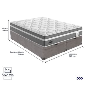 O conforto que sua casa precisa e a qualidade que você merece está na Kazamix! Apresentamos o Colchão Probel Berlim, a escolha ideal para quem busca conforto e qualidade. Com Molas Ensacadas e camada Euro Pillow, ele proporciona suporte individualizado e maciez extra para um sono tranquilo. A espuma D28 oferece durabilidade e conforto, enquanto o tecido em malha e jacquard garante um toque sofisticado e respirabilidade. Além disso, conta com proteções antiácaro e antialérgico, criando um ambiente saudável para o seu descanso. Invista no seu conforto com o Colchão Probel Berlim! Modelo: Berlim Marca: Probel Tamanho: Queen Dimensões: 158x198X26 (Largura x Comprimento x Altura) Conforto: Intermediário Sistema: Molas Ensacadas Pillow: Euro Pillow Peso Máximo recomendado: 110 kg (Por pessoa) Proteções: Antiácaro, antialérgico, antifungo, antimofo Garantia: 1 ano pelo FabricanteO conforto que sua casa precisa e a qualidade que você merece está na Kazamix Aproveite cada metro quadrado do seu dormitório com a Cama Box Baú! Projetada com madeira de reflorestamento reforçada, a Cama Box Baú é a escolha ideal para quem busca otimização de espaço e praticidade na organização do dia a dia. Com um baú generoso, ela oferece a solução perfeita para armazenar travesseiros extras, cobertores, malas e muito mais. Além disso, sua estrutura robusta suporta até 150 kg por pessoa, garantindo a sustentação ideal para o seu colchão e prolongando sua vida útil. O pistão a gás robusto proporciona uma abertura suave e segura do baú, oferecendo praticidade e resistência no uso diário. Para completar, o acabamento de alta qualidade combina perfeitamente com qualquer estilo de decoração, agregando elegância e versatilidade ao seu ambiente. Não perca tempo! Adquira agora mesmo sua Cama Box Baú e diga adeus à falta de espaço e desorganização. Marca: KazaMix Modelo: Baú Tamanho: Queen Dimensões: 158X198X37 (Largura x Comprimento x Altura) Estrutura: Madeira Peso máximo recomendado: 150 kg (Por Pessoa) Altura do Box: 32 cm Altura dos Pés: 5 cm Altura total: 37 cm Garantia: 03 meses Selo Ecologicamente Correto Atenção: Antes de finalizar sua compra, certifique-se de que as dimensões do produto sejam adequadas para serem transportadas pelos elevadores, portas, escadas e corredores de sua residência. Ressaltamos que não nos responsabilizamos pelo transporte do produto por meios específicos, como escadas, guinchos ou içamentos.