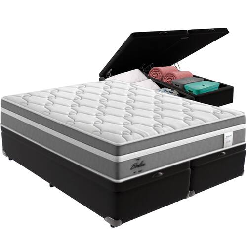 Cama Box Baú e Colchão Berlim Molas Ensacadas Queen Probel - Preto