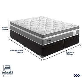 O conforto que sua casa precisa e a qualidade que você merece está na Kazamix! Apresentamos o Colchão Probel Berlim, a escolha ideal para quem busca conforto e qualidade. Com Molas Ensacadas (Molas Ensacadas) e camada Euro Pillow, ele proporciona suporte individualizado e maciez extra para um sono tranquilo. A espuma D28 oferece durabilidade e conforto, enquanto o tecido em malha e jacquard garante um toque sofisticado e respirabilidade. Além disso, conta com proteções antiácaro e antialérgico, criando um ambiente saudável para o seu descanso. Invista no seu conforto com o Colchão Probel Berlim! Modelo: Berlim Marca: Probel Tamanho: Queen Dimensões: 158x198X26 (Largura x Comprimento x Altura) Conforto: Intermediário Sistema: Molas Ensacadas Pillow: Euro Pillow Peso Máximo recomendado: 110 kg (Por pessoa) Proteções: Antiácaro, antialérgico, antifungo, antimofo Garantia: 1 ano pelo FabricanteO conforto que sua casa precisa e a qualidade que você merece está na Kazamix Aproveite cada metro quadrado do seu dormitório com a Cama Box Baú! Projetada com madeira de reflorestamento reforçada, a Cama Box Baú é a escolha ideal para quem busca otimização de espaço e praticidade na organização do dia a dia. Com um baú generoso, ela oferece a solução perfeita para armazenar travesseiros extras, cobertores, malas e muito mais. Além disso, sua estrutura robusta suporta até 150 kg por pessoa, garantindo a sustentação ideal para o seu colchão e prolongando sua vida útil. O pistão a gás robusto proporciona uma abertura suave e segura do baú, oferecendo praticidade e resistência no uso diário. Para completar, o acabamento de alta qualidade combina perfeitamente com qualquer estilo de decoração, agregando elegância e versatilidade ao seu ambiente. Não perca tempo! Adquira agora mesmo sua Cama Box Baú e diga adeus à falta de espaço e desorganização. Marca: KazaMix Modelo: Baú Tamanho: Queen Dimensões: 158X198X37 (Largura x Comprimento x Altura) Estrutura: Madeira Peso máximo recomendado: 150 kg (Por Pessoa) Altura do Box: 32 cm Altura dos Pés: 5 cm Altura total: 37 cm Garantia: 03 meses Selo Ecologicamente Correto Atenção: Antes de finalizar sua compra, certifique-se de que as dimensões do produto sejam adequadas para serem transportadas pelos elevadores, portas, escadas e corredores de sua residência. Ressaltamos que não nos responsabilizamos pelo transporte do produto por meios específicos, como escadas, guinchos ou içamentos.