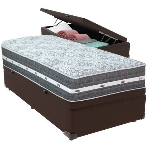 Cama Box Baú e Colchão Black Graphite Molas Ensacadas Solteiro 88x188X32 Anjos - Marrom