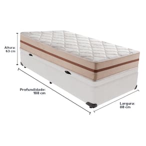 O conforto que sua casa precisa e a qualidade que você merece está na Kazamix! O Colchão Classic da Anjos é a escolha perfeita para quem busca um descanso confortável e duradouro, sem abrir mão de um ótimo custo-benefício. Com sua alta densidade e a tecnologia das molas ensacadas, ele oferece um suporte firme e uma distribuição de peso uniforme, garantindo noites de sono tranquilas e reparadoras. Seu design clean, com uma superfície plana, traz um visual moderno e sofisticado para o ambiente, enquanto o tratamento antiácaro e antialérgico proporciona um ambiente de descanso mais saudável. Ideal para quem deseja conforto, durabilidade e qualidade em um único colchão. Invista no seu bem-estar e transforme suas noites com o colchão Classic da Anjos. Modelo: Classic 26 Marca: Anjos Tamanho: Solteiro Dimensões: 88x188X26 (Largura x Comprimento x Altura) Conforto: Intermediário Sistema: Molas ensacadas Pillow: Não se Aplica Peso Máximo recomendado: 120 kg (Por pessoa) Proteções: Antiácaro, antialérgico, antifungo, antimofo Garantia: 1 ano pelo FabricanteO conforto que sua casa precisa e a qualidade que você merece está na Kazamix Aproveite cada metro quadrado do seu dormitório com a Cama Box Baú! Projetada com madeira de reflorestamento reforçada, a Cama Box Baú é a escolha ideal para quem busca otimização de espaço e praticidade na organização do dia a dia. Com um baú generoso, ela oferece a solução perfeita para armazenar travesseiros extras, cobertores, malas e muito mais. Além disso, sua estrutura robusta suporta até 150 kg por pessoa, garantindo a sustentação ideal para o seu colchão e prolongando sua vida útil. O pistão a gás robusto proporciona uma abertura suave e segura do baú, oferecendo praticidade e resistência no uso diário. Para completar, o acabamento de alta qualidade combina perfeitamente com qualquer estilo de decoração, agregando elegância e versatilidade ao seu ambiente. Não perca tempo! Adquira agora mesmo sua Cama Box Baú e diga adeus à falta de espaço e desorganização. Marca: KazaMix Modelo: Baú Tamanho: Solteiro Dimensões: 88X188X37 (Largura x Comprimento x Altura) Estrutura: Madeira Peso máximo recomendado: 150 kg (Por Pessoa) Altura do Box: 32 cm Altura dos Pés: 5 cm Altura total: 37 cm Garantia: 03 meses Selo Ecologicamente Correto Atenção: Antes de finalizar sua compra, certifique-se de que as dimensões do produto sejam adequadas para serem transportadas pelos elevadores, portas, escadas e corredores de sua residência. Ressaltamos que não nos responsabilizamos pelo transporte do produto por meios específicos, como escadas, guinchos ou içamentos.
