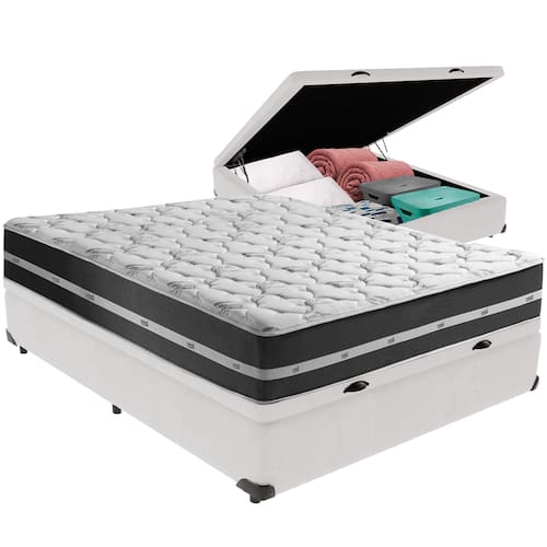 O conforto que sua casa precisa e a qualidade que você merece está na Kazamix! Descubra o Colchão Classic da Anjos, a combinação perfeita de funcionalidade, conforto e durabilidade. Com design clean e moderno, sua superfície plana proporciona um toque de elegância ao ambiente, enquanto as molas ensacadas garantem um suporte individualizado, ideal para um descanso tranquilo e sem transferência de movimento. Este modelo oferece conforto intermediário, adaptando-se às mais variadas preferências. Com tratamento antiácaro e antialérgico, o Classic cria um ambiente mais saudável e seguro para o seu sono. Um colchão de alta densidade que une qualidade e custo-benefício, perfeito para quem valoriza bem-estar e sofisticação. Transforme suas noites com o conforto que você merece! Modelo: Classic 26 Preto Marca: Anjos Tamanho: Casal Dimensões: 138x188X26 (Largura x Comprimento x Altura) Conforto: Intermediário Sistema: Molas ensacadas Pillow: Não se Aplica Peso Máximo recomendado: 130 kg (Por pessoa) Proteções: Antiácaro, antialérgico, antifungo, antimofo Garantia: 1 ano pelo FabricanteO conforto que sua casa precisa e a qualidade que você merece está na Kazamix Aproveite cada metro quadrado do seu dormitório com a Cama Box Baú! Projetada com madeira de reflorestamento reforçada, a Cama Box Baú é a escolha ideal para quem busca otimização de espaço e praticidade na organização do dia a dia. Com um baú generoso, ela oferece a solução perfeita para armazenar travesseiros extras, cobertores, malas e muito mais. Além disso, sua estrutura robusta suporta até 150 kg por pessoa, garantindo a sustentação ideal para o seu colchão e prolongando sua vida útil. O pistão a gás robusto proporciona uma abertura suave e segura do baú, oferecendo praticidade e resistência no uso diário. Para completar, o acabamento de alta qualidade combina perfeitamente com qualquer estilo de decoração, agregando elegância e versatilidade ao seu ambiente. Não perca tempo! Adquira agora mesmo sua Cama Box Baú e diga adeus à falta de espaço e desorganização. Marca: KazaMix Modelo: Baú Tamanho: Casal Dimensões: 138X188X37 (Largura x Comprimento x Altura) Estrutura: Madeira Peso máximo recomendado: 150 kg (Por Pessoa) Altura do Box: 32 cm Altura dos Pés: 5 cm Altura total: 37 cm Garantia: 03 meses Selo Ecologicamente Correto Atenção: Antes de finalizar sua compra, certifique-se de que as dimensões do produto sejam adequadas para serem transportadas pelos elevadores, portas, escadas e corredores de sua residência. Ressaltamos que não nos responsabilizamos pelo transporte do produto por meios específicos, como escadas, guinchos ou içamentos.