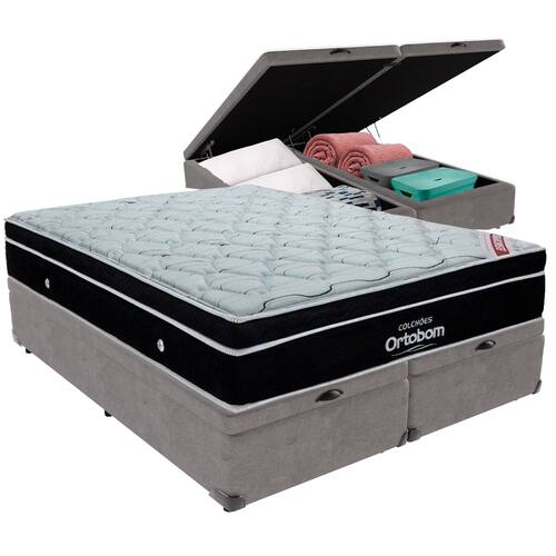 Cama Box Baú e Colchão Elegant Molas Ensacadas Queen Ortobom - Cinza