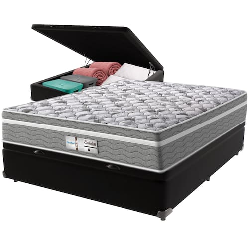 Cama Box Baú e Colchão Evolution Molas Ensacadas Casal Probel - Preto