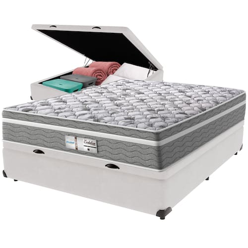 Cama Box Baú e Colchão Evolution Molas Ensacadas Casal Probel - Branco