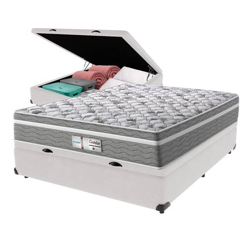 O conforto que sua casa precisa e a qualidade que você merece está na Kazamix! O Colchão Evolution é a escolha ideal para quem busca conforto, suporte e qualidade em cada noite de sono. Com Molas Ensacadas que oferecem um suporte individualizado, e um Pillow Euro que proporciona uma camada extra de suavidade, esse colchão transforma seu descanso em uma experiência de luxo. Com espuma D28 de alta densidade, o Evolution garante firmeza e conforto duradouros. Seu acabamento em poliéster diamante e bordado em matelassê trazem um toque de elegância e sofisticação ao seu ambiente. Além disso, o colchão é tratado com propriedades antiácaro e antialérgico, garantindo um sono mais saudável e seguro. Invista no seu bem-estar com o colchão Evolution, e experimente a combinação perfeita de conforto e durabilidade! Modelo: Evolution Marca: Probel Tamanho: Viúvo Dimensões: 128x188X18 (Largura x Comprimento x Altura) Conforto: Intermediário Sistema: Molas Ensacadas Pillow: Euro Pillow Peso Máximo recomendado: 110 kg (Por pessoa) Proteções: Antiácaro, antialérgico, antifungo, antimofo Garantia: 1 ano pelo FabricanteO conforto que sua casa precisa e a qualidade que você merece está na Kazamix Aproveite cada metro quadrado do seu dormitório com a Cama Box Baú! Projetada com madeira de reflorestamento reforçada, a Cama Box Baú é a escolha ideal para quem busca otimização de espaço e praticidade na organização do dia a dia. Com um baú generoso, ela oferece a solução perfeita para armazenar travesseiros extras, cobertores, malas e muito mais. Além disso, sua estrutura robusta suporta até 150 kg por pessoa, garantindo a sustentação ideal para o seu colchão e prolongando sua vida útil. O pistão a gás robusto proporciona uma abertura suave e segura do baú, oferecendo praticidade e resistência no uso diário. Para completar, o acabamento de alta qualidade combina perfeitamente com qualquer estilo de decoração, agregando elegância e versatilidade ao seu ambiente. Não perca tempo! Adquira agora mesmo sua Cama Box Baú e diga adeus à falta de espaço e desorganização. Marca: KazaMix Modelo: Baú Tamanho: Viúvo Dimensões: 128X188X37 (Largura x Comprimento x Altura) Estrutura: Madeira Peso máximo recomendado: 150 kg (Por Pessoa) Altura do Box: 32 cm Altura dos Pés: 5 cm Altura total: 37 cm Garantia: 03 meses Selo Ecologicamente Correto Atenção: Antes de finalizar sua compra, certifique-se de que as dimensões do produto sejam adequadas para serem transportadas pelos elevadores, portas, escadas e corredores de sua residência. Ressaltamos que não nos responsabilizamos pelo transporte do produto por meios específicos, como escadas, guinchos ou içamentos.