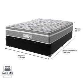 O conforto que sua casa precisa e a qualidade que você merece está na Kazamix! O Colchão Evolution é a escolha ideal para quem busca conforto, suporte e qualidade em cada noite de sono. Com Molas Ensacadas que oferecem um suporte individualizado, e um Pillow Euro que proporciona uma camada extra de suavidade, esse colchão transforma seu descanso em uma experiência de luxo. Com espuma D28 de alta densidade, o Evolution garante firmeza e conforto duradouros. Seu acabamento em poliéster diamante e bordado em matelassê trazem um toque de elegância e sofisticação ao seu ambiente. Além disso, o colchão é tratado com propriedades antiácaro e antialérgico, garantindo um sono mais saudável e seguro. Invista no seu bem-estar com o colchão Evolution, e experimente a combinação perfeita de conforto e durabilidade! Modelo: Evolution Marca: Probel Tamanho: Viúvo Dimensões: 128x188X18 (Largura x Comprimento x Altura) Conforto: Intermediário Sistema: Molas Ensacadas Pillow: Euro Pillow Peso Máximo recomendado: 110 kg (Por pessoa) Proteções: Antiácaro, antialérgico, antifungo, antimofo Garantia: 1 ano pelo FabricanteO conforto que sua casa precisa e a qualidade que você merece está na Kazamix Aproveite cada metro quadrado do seu dormitório com a Cama Box Baú! Projetada com madeira de reflorestamento reforçada, a Cama Box Baú é a escolha ideal para quem busca otimização de espaço e praticidade na organização do dia a dia. Com um baú generoso, ela oferece a solução perfeita para armazenar travesseiros extras, cobertores, malas e muito mais. Além disso, sua estrutura robusta suporta até 150 kg por pessoa, garantindo a sustentação ideal para o seu colchão e prolongando sua vida útil. O pistão a gás robusto proporciona uma abertura suave e segura do baú, oferecendo praticidade e resistência no uso diário. Para completar, o acabamento de alta qualidade combina perfeitamente com qualquer estilo de decoração, agregando elegância e versatilidade ao seu ambiente. Não perca tempo! Adquira agora mesmo sua Cama Box Baú e diga adeus à falta de espaço e desorganização. Marca: KazaMix Modelo: Baú Tamanho: Viúvo Dimensões: 128X188X37 (Largura x Comprimento x Altura) Estrutura: Madeira Peso máximo recomendado: 150 kg (Por Pessoa) Altura do Box: 32 cm Altura dos Pés: 5 cm Altura total: 37 cm Garantia: 03 meses Selo Ecologicamente Correto Atenção: Antes de finalizar sua compra, certifique-se de que as dimensões do produto sejam adequadas para serem transportadas pelos elevadores, portas, escadas e corredores de sua residência. Ressaltamos que não nos responsabilizamos pelo transporte do produto por meios específicos, como escadas, guinchos ou içamentos.