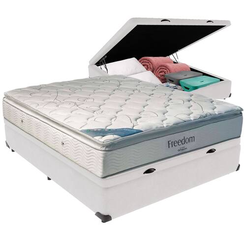 Cama Box Baú e Colchão Freedom Molas Ensacadas Casal Ortobom - Branco