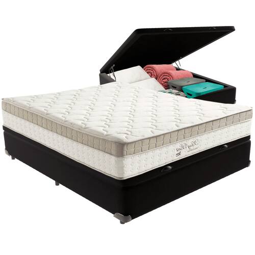 Cama Box Baú e Colchão King Best Bege Molas Ensacadas Casal Anjos