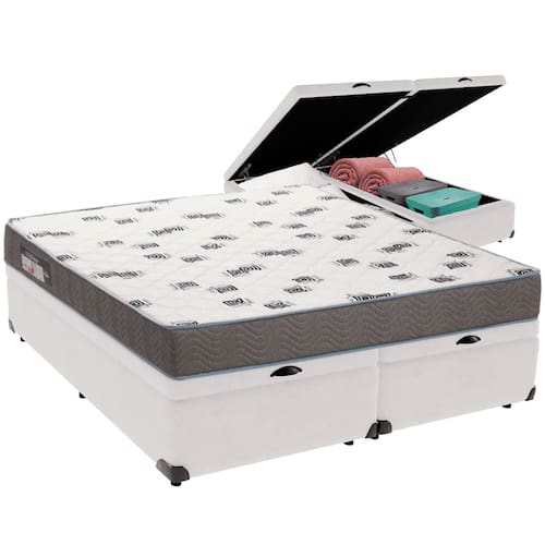 Cama Box Baú e Colchão Light Espuma D33 Queen Ortobom - Branco
