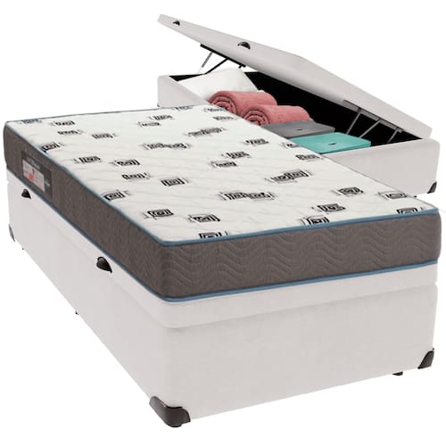 Cama Box Baú e Colchão Light Espuma D33 Solteiro Ortobom - Branco
