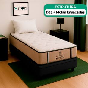 A tecnologia que a sua casa merece está na V-Store! O Conjunto Colchão Madrid + Base Box Baú Bravus da V-Store oferece o equilíbrio perfeito entre conforto, praticidade e elegância. O colchão, com molas ensacadas e sistema EPS, garante noites de sono tranquilas, com suporte ideal e proteção contra ácaros e alergias. Já a base box baú, feita com madeira reflorestada, conta com um design sofisticado, amplo espaço de armazenamento e funcionalidade adicional para guardar travesseiros, malas e cobertores. Com capacidade para até 150 kg por pessoa, esse conjunto é ideal para quem busca qualidade e praticidade.Característica Do Colchão: Modelo: MadridMarca: V-StoreTamanho: SolteiroDimensões: 78x28x188 (Largura x Altura x Comprimento)Conforto: MédioSistema: Molas EnsacadasPillow: Não se aplicaPeso Máximo recomendado: 150 kg (Por pessoa)Proteções: Antiácaro, antialérgico, antifungo, antimofoGarantia: 12 Meses (Espuma) / 10 anos ( Conjunto de Molas Ensacadas)Característica Da Base: Marca: V-StoreModelo: BravusTamanho: SolteiroDimensões: 78x44x188 (Largura x Altura x Comprimento)Estrutura: MadeiraPeso máximo recomendado: 150 kg (Por Pessoa)Altura do Box: 38 cmAltura dos Pés: 6 cmAltura total: 44 cmGarantia: 12 Meses (Estrutura) / 3 meses (Tecido)Selo Ecologicamente CorretoAtenção:- Antes de finalizar sua compra, recomendamos que verifique se as dimensões do produto são adequadas para serem transportadas pelos elevadores, portas, escadas e corredores de sua residência. Ressaltamos que não nos responsabilizamos pelo transporte do produto por meios específicos, como escadas, guinchos ou içamentos.- É possível que hajam leves variações de cor de acordo com o dispositivo que está sendo utilizado como smartphones, computadores, monitores e outros.