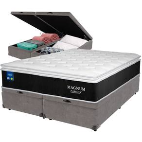 O conforto que sua casa precisa e a qualidade que você merece está na Kazamix! Descubra o colchão Magnum da Plumatex, a escolha ideal para quem busca conforto, suporte e qualidade. Com tecnologia avançada, o Magnum combina o melhor em materiais e design para proporcionar uma experiência de sono única. O colchão conta com uma camada de Malha Chronos 180 g/m², que oferece um toque macio e agradável. As Molas Ensacadas garantem suporte personalizado e distribuem o peso de forma uniforme, minimizando a transferência de movimento. A Espuma D26 oferece firmeza e conforto duradouro, enquanto o EPS Pillow Top High Tech adiciona um toque luxuoso, elevando ainda mais a experiência de descanso. Com proteção antiácaro, antialérgico e antifungo, o Magnum assegura um ambiente saudável para o seu sono. Ideal para quem deseja um colchão durável e de alta performance. Invista no seu bem-estar e experimente o conforto excepcional do Magnum. Modelo: Magnum Marca: Plumatex Tamanho: Queen Dimensões: 158x198X28 (Largura x Comprimento x Altura) Conforto: Intermediário Sistema: Molas Ensacadas Pillow: Pillow Top Peso Máximo recomendado: 110 kg (Por pessoa) Proteções: Antiácaro, antialérgico, antifungo, antimofo Garantia: 1 ano pelo FabricanteO conforto que sua casa precisa e a qualidade que você merece está na Kazamix Aproveite cada metro quadrado do seu dormitório com a Cama Box Baú! Projetada com madeira de reflorestamento reforçada, a Cama Box Baú é a escolha ideal para quem busca otimização de espaço e praticidade na organização do dia a dia. Com um baú generoso, ela oferece a solução perfeita para armazenar travesseiros extras, cobertores, malas e muito mais. Além disso, sua estrutura robusta suporta até 150 kg por pessoa, garantindo a sustentação ideal para o seu colchão e prolongando sua vida útil. O pistão a gás robusto proporciona uma abertura suave e segura do baú, oferecendo praticidade e resistência no uso diário. Para completar, o acabamento de alta qualidade combina perfeitamente com qualquer estilo de decoração, agregando elegância e versatilidade ao seu ambiente. Não perca tempo! Adquira agora mesmo sua Cama Box Baú e diga adeus à falta de espaço e desorganização. Marca: KazaMix Modelo: Baú Tamanho: Queen Dimensões: 158X198X37 (Largura x Comprimento x Altura) Estrutura: Madeira Peso máximo recomendado: 150 kg (Por Pessoa) Altura do Box: 32 cm Altura dos Pés: 5 cm Altura total: 37 cm Garantia: 03 meses Selo Ecologicamente Correto Atenção: Antes de finalizar sua compra, certifique-se de que as dimensões do produto sejam adequadas para serem transportadas pelos elevadores, portas, escadas e corredores de sua residência. Ressaltamos que não nos responsabilizamos pelo transporte do produto por meios específicos, como escadas, guinchos ou içamentos.