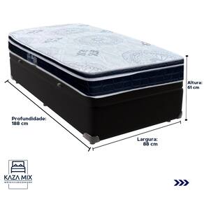 O conforto que sua casa precisa e a qualidade que você merece está na Kazamix! O Colchão Orthosono One Face une conforto firme e durabilidade com espuma D33 de alta qualidade. Com Pillow Top, oferece uma camada extra de conforto para noites de sono ainda mais relaxantes. O revestimento em poliéster com bordado contínuo proporciona maciez e elegância, enquanto a tecnologia No Turn dispensa a necessidade de virar o colchão. Conta com base antiderrapante para maior estabilidade e tratamento antiácaro e antifungo, garantindo proteção contra alérgenos. Produzido com EPS, contribui para melhor isolamento térmico e maior leveza do produto. Certificado pelo INMETRO e fabricado com materiais sustentáveis, é a escolha ideal para quem busca qualidade e bem-estar. Modelo: Orthosono Marca: Anjos Tamanho: Solteiro Dimensões: 88x188X18 (Largura x Comprimento x Altura) Conforto: Firme Sistema: Espuma D33 Pillow: Pillow Top Peso Máximo recomendado: 140 kg (Por pessoa) Proteções: Antiácaro, antialérgico, antifungo, antimofo Garantia: 1 ano pelo FabricanteO conforto que sua casa precisa e a qualidade que você merece está na Kazamix Aproveite cada metro quadrado do seu dormitório com a Cama Box Baú! Projetada com madeira de reflorestamento reforçada, a Cama Box Baú é a escolha ideal para quem busca otimização de espaço e praticidade na organização do dia a dia. Com um baú generoso, ela oferece a solução perfeita para armazenar travesseiros extras, cobertores, malas e muito mais. Além disso, sua estrutura robusta suporta até 150 kg por pessoa, garantindo a sustentação ideal para o seu colchão e prolongando sua vida útil. O pistão a gás robusto proporciona uma abertura suave e segura do baú, oferecendo praticidade e resistência no uso diário. Para completar, o acabamento de alta qualidade combina perfeitamente com qualquer estilo de decoração, agregando elegância e versatilidade ao seu ambiente. Não perca tempo! Adquira agora mesmo sua Cama Box Baú e diga adeus à falta de espaço e desorganização. Marca: KazaMix Modelo: Baú Tamanho: Solteiro Dimensões: 88X188X37 (Largura x Comprimento x Altura) Estrutura: Madeira Peso máximo recomendado: 150 kg (Por Pessoa) Altura do Box: 32 cm Altura dos Pés: 5 cm Altura total: 37 cm Garantia: 03 meses Selo Ecologicamente Correto Atenção: Antes de finalizar sua compra, certifique-se de que as dimensões do produto sejam adequadas para serem transportadas pelos elevadores, portas, escadas e corredores de sua residência. Ressaltamos que não nos responsabilizamos pelo transporte do produto por meios específicos, como escadas, guinchos ou içamentos.