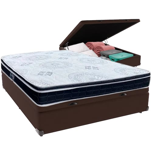 Cama Box Baú e Colchão Orthosono D33 Com Pillow Top Viúvo Anjos - Marrom