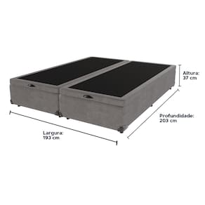 O conforto que sua casa precisa e a qualidade que você merece está na KazamixAproveite cada metro quadrado do seu dormitório com a Cama Box Baú!Projetada com madeira de reflorestamento reforçada, a Cama Box Baú é a escolha ideal para quem busca otimização de espaço e praticidade na organização do dia a dia.Com um baú generoso, ela oferece a solução perfeita para armazenar travesseiros extras, cobertores, malas e muito mais. Além disso, sua estrutura robusta suporta até 150 kg por pessoa, garantindo a sustentação ideal para o seu colchão e prolongando sua vida útil.O pistão a gás robusto proporciona uma abertura suave e segura do baú, oferecendo praticidade e resistência no uso diário. Para completar, o acabamento de alta qualidade combina perfeitamente com qualquer estilo de decoração, agregando elegância e versatilidade ao seu ambiente.Não perca tempo! Adquira agora mesmo sua Cama Box Baú e diga adeus à falta de espaço e desorganização.Marca: KazaMixModelo: BaúCor do Box: CinzaTamanho: KingDimensões: 193X203X37 (Largura x Comprimento x Altura) Estrutura: MadeiraPeso máximo recomendado: 150 kg (Por Pessoa)Altura do Box: 32 cm Altura dos Pés: 5 cm Altura total: 37 cm Garantia: 03 mesesSelo Ecologicamente CorretoAtenção: Antes de finalizar sua compra, certifique-se de que as dimensões do produto sejam adequadas para serem transportadas pelos elevadores, portas, escadas e corredores de sua residência. Ressaltamos que não nos responsabilizamos pelo transporte do produto por meios específicos, como escadas, guinchos ou içamentos. Marca: KazaMix